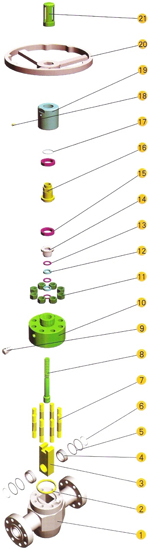¡¡¡¡Rising stem slab gate valves manufactured by Yancheng Shenhua Machinery manufacture Co. , Ltd . are available in temperature classes L , P , R , S , T , and U specified in API 6A. Gate valves to be used in the 350oF or 650oF high temperature can be supplied on request. Fire-proof gate valves also can be supplied to API 6A . Gate valves manufactured by our company are available in 2000psi, 3000psi, 5000psi, 10000psi and 15000psi working pressure, material classes from AA through FF, product specification levels (PSL) from 1 through 3 and performance requirement(PR) 1. ¡¡¡¡The rising stem slab gate valves manufactured by our company have the same characters as the non-rising stem slab gate valves. For it is designed by rising stem, the close and open of the valves is completely controlled. ¡¡¡¡Note : under pressure ,the valves is forbidden to be semi-shrouded, for it will do great harm to the gate valve and great reduce the service life of the valve.