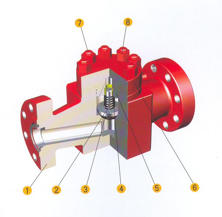 ””””The product is designed and manufactured according to API Spec 6A "quipment Specification of Wellhead &X' as tree" and matched and interchangeable with any equipment which conforms to API 6A specification. ””””It creates the metal-to-metal seal by the pressure of the medium, the more the pressure is, the better the sealing effect is. Anytime the valve chamber can bear the pressure of the pipeline. ””””Valve body is machined of alloy steal forging with a stronger machinery properties and reliable performance. ””””Bonnet is connected with valve body with bolt, the seals include the sealing ring in the bonnet and the seal in the valve body, which has redure the assembly clearance up to O as designed, so it decreases the corrosion against bolt and bolt hole from acid medium as well as bolt loading. ””””The sealing face between valve core and valve body is welded with hard alloy with good abrasion resistance and anti-scour ; the valve core is made of sulfide-resistance steal and the others adopt the process of hardness limit so the valve is able to be used in H2S condition. ””””Operation instruction According to medium flow direction and by the flow direction indicating plate of the valve, the valve is installed. As positive flowing, The medium lifts the valve core and pass easily; If no positive medium pressure, valve core will self-shut off valve gate under self-weight and spring? tensile force, the back medium flowing stop. Maintenances The valve should be placed in the dry and airy room, and the inlet and outlet are sealed properly. When the product is stored , the end flanges should be coated by oil against rust and dirt pollution. The valve-core and the valve-seat must be examined every in a well time. The attrition rate will decide whether they are used by upset or are replaced. Every seal element is replaced according to its examination. There is a bit leak at a couple of seals of valve, and the sealing-face may have scratch or wear. Renovation will be done under face-off and ground finish. As leak appears at the middle one of the valve bores, ring gasket should be replaced.