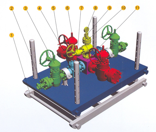 1.Application In case of increase of the well head pressure, the kill manifold can provide a means of pumping heavy drilling fluid into the well to balance bottom hole pressure so that well kick and blowout can be prevented. In this case. by using blowdown lines connected to then kill manifold. Then increasing well head pressure also can be released directly for bottom hole pressure release. Or water and extinguishing agent can be injected into then well by means of then kill manifold. The check valves on the kill manifold. Only allow injection of kill fluid or other fluids into the well bore through themselves , but do not allow any backflow so as to perform the kill operation or other operati 2.Structure The kill manifold consists of check valves . gate vales, pressure gauges and pipelines . The one end of the kill manifold is connected to the drilling spool and the other end is connected to the pump . The kill manifold and choke manifold and both designed to APL16C and be used together . The kill manifold is available for pressure ratings of 14MPa , 21MPa , 35MPa and 70MPa . 3 .Operating Requirements (1) working pressure of all pipelines . Gate valves and check valves shall be compatible with that of the BOP stack used . (2) The kill manifold is not intended to be used as common lines for pouring drilling fluid .