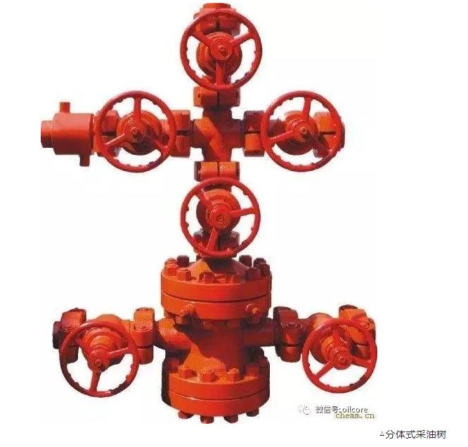 采油树按结构形式,可分为分体式和整体式两种。分体式是由一些阀门等独立部件组装而成。