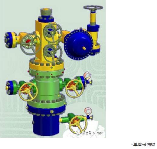 单油管采油树安装在单油管完井的井口装置上,除了有分体式和整体式之外,它还有单翼和双翼之分。根据井的种类或油井生产方式的差别,可用阀门及短节组合成不同形式的单油管采油树,而其连接方式可以是法兰式、螺纹式或卡箍式。