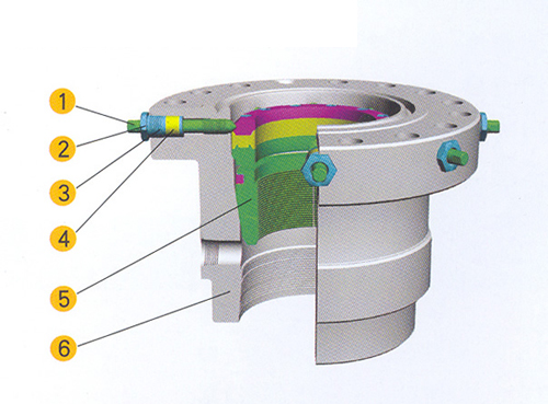 套管头是连接套管和各种井口装置的一种部件。用以支持技术套管和油层套管的重力,密封各层管间的环形空间。为安装防喷器、油管头和采油树等上部井口装置提供过渡连接,并且通过套管头本体上的两个侧口,可以进行补挤水泥,监控井沉和注平衡液等作业。 我公司生产的套管头是标准结构,在其壳体内配置安装我公司的套管悬挂器,并可根据套管程序和井口条件的变化选择不同规格的套管悬挂器。本体的上部均为API 6B 法兰或API 6BX法兰。